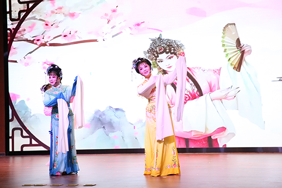 越剧身段《琴心》中,学员们水袖轻扬、眉眼传情,尽显越剧写意之美的细腻典雅。