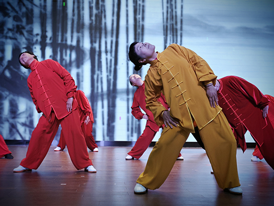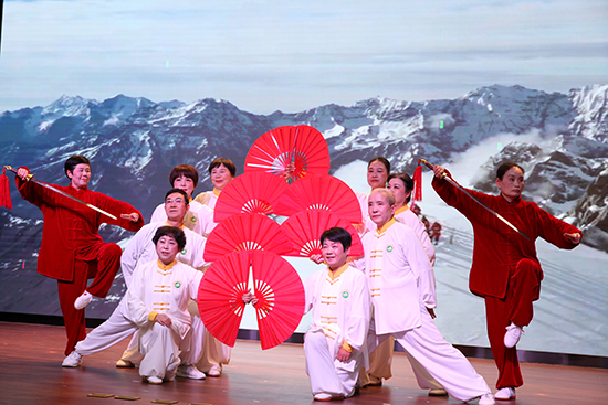 “朋友来了有好酒,若是那豺狼来了,迎接它的有猎枪”,在《我的祖国》伴奏下,太极剑扇合演则将浓浓的爱国情怀融合于剑的威猛与扇的飘逸中,刚柔并济间彰显传统武术的独特魅力。