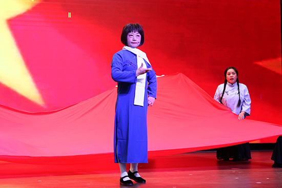 越剧唱腔《绣红旗》婉转深情,表演者以精湛的唱功带观众重温革命岁月里的信仰之光。