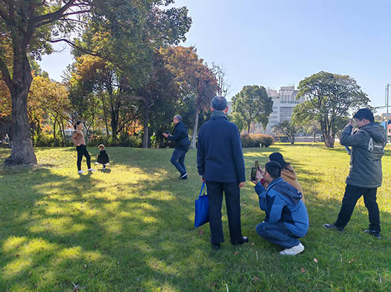 随后,学员们分为地面拍摄组与无人机拍摄组同步创作。地面组深入园区车间外围、中央景观带捕捉细节;无人机组则在司徒老师的指导下,轮流操控设备,从高空定格标准化厂房的整齐阵列、物流通道的繁忙景象,以及绿植与工业建筑交织的生态画面。“以前只能平视园区,现在从空中看,才发现厂房的几何排布这么有设计感!”首次接触无人机拍摄的职工李女士,在成功拍出园区全景图后兴奋不已。