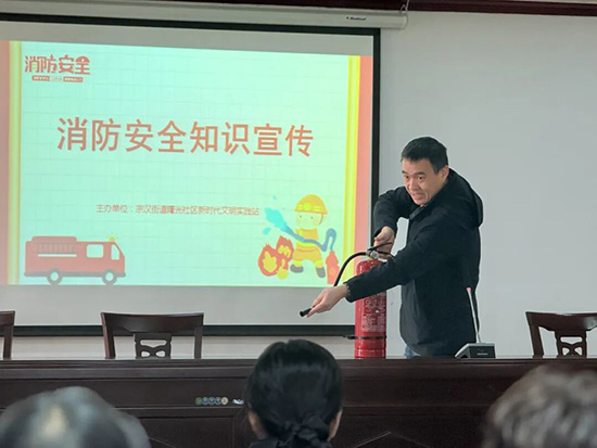 活动中,宗汉社区教育中心充分发挥老年大学平台优势,将消防安全课纳入特色教学内容。特邀宗汉街道消防站专业人员担任主讲,结合老年人生活实际与认知特点,以“方言解读+真实案例”的通俗化方式,重点讲解家庭防火核心要点,逐点拆解“三清三关”(清楼道、清阳台、清厨房,关火源、关电源、关气源)安全准则。宣讲现场,消防员手持灭火器实操演示,针对老年学员动作节奏,手把手指导“提、拔、握、压”四步操作要领,反复示范关键细节,确保在场学员均能独立完成基础操作。讲座结束后,大家围绕“家用电器长期不拔插头的隐患”“厨房油锅起火应急处置”等日常疑点踊跃提问,消防员逐一耐心解答,课堂互动氛围热烈。
