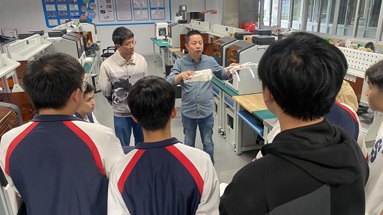 针对这些难点,以王克豪、闵林锋两位指导老师为核心的指导师团队根据文件要求,快速制定“理论+实操 +模拟”三位一体的专项训练计划。团队先系统梳理增材制造理论知识,覆盖三维建模、切片软件操作、设备调试等核心内容;再对照赛事标准,逐步骤演示成型工艺参数优化、打印质量控制等实操要点;最后通过突发故障排查、打印精度校准等模拟演练强化应急能力。师生们充分利用课余时间扎根实训车间,反复打磨技术细节,最终在硬件适配与软件应用的双重挑战中实现技能突破,为赛场竞技筑牢坚实基础。