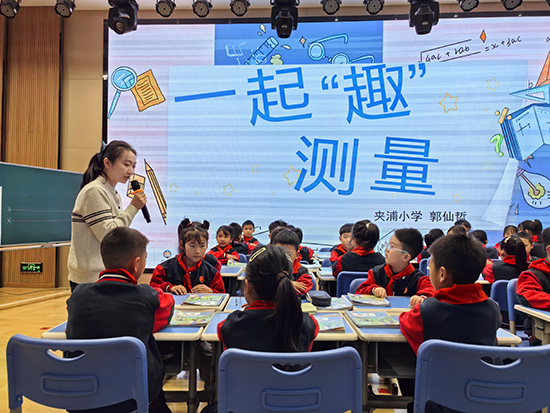 在夹浦镇中心小学,以“立足课堂教学规范,探索量规设计使用”为主题,通过开展课堂展示活动。长兴县夹浦镇中心小学郭仙哲老师执教《一起“趣”测量》,引导学生通过多元工具测量实践,在自评、互评与师评的互动中掌握度量知识,同步提升评价素养;长兴县实验小学顾文斌老师的《曹冲称象》课堂,借助评价量表实时跟踪学生学习表现,通过小组称重实践培养量感与推理意识,让评价贯穿教学全过程。