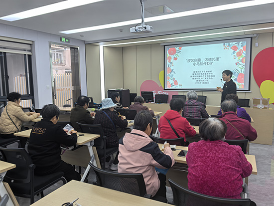 12月2日下午,新碶街道社教中心海棠分中心活动室内传来针线穿过皮料的细微声响,原来是老年居民们一双双灵巧的手,正将二维的皮料,缝制成一个个三维的、充满温度与幻想的皮质小马挂件。