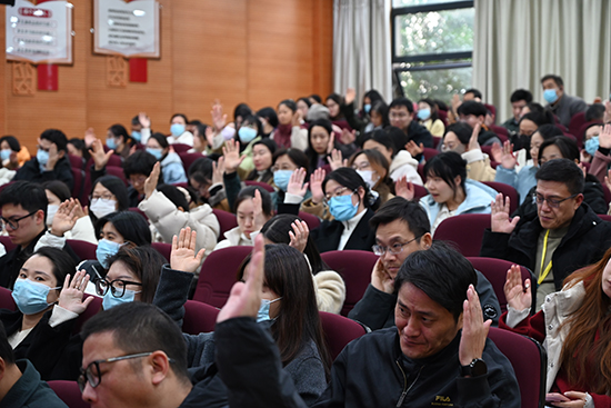 新当选的第五届工会主席唐瑛代表新一届委员会表态。她承诺,今后工会将坚守“服务教职工、凝聚向心力”的初心宗旨,不辜负全体会员的信任与重托,以更务实的作风、更创新的举措,全力将工会打造成教职工信赖依靠的“温馨之家”。