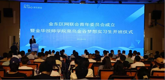 图片说明:2023年,学校与阿里巴巴菜鸟产业园合作,推出“梦想实习生”项目,为电商、国贸专业的协同教学提供优质实践基地。