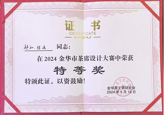 图片说明:金华市技师学院以金华本地非遗文化为主题的作品《仙音茶韵》,在2024年金华市茶席设计大赛中获得特等奖。该作品由学院旅游专业教师赵如、陈波设计,融合了金华黄大仙传说、婺州举岩茶、婺州窑、金华陶笛制作技艺等从地区、国家到世界级的本地非物质文化遗产元素,尤其是“金华陶笛制作技艺”项目是由陈波老师主导的婺城区非遗产品,并在积极申报市级非遗过程中。