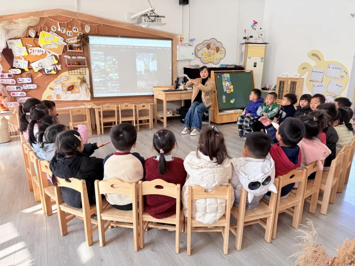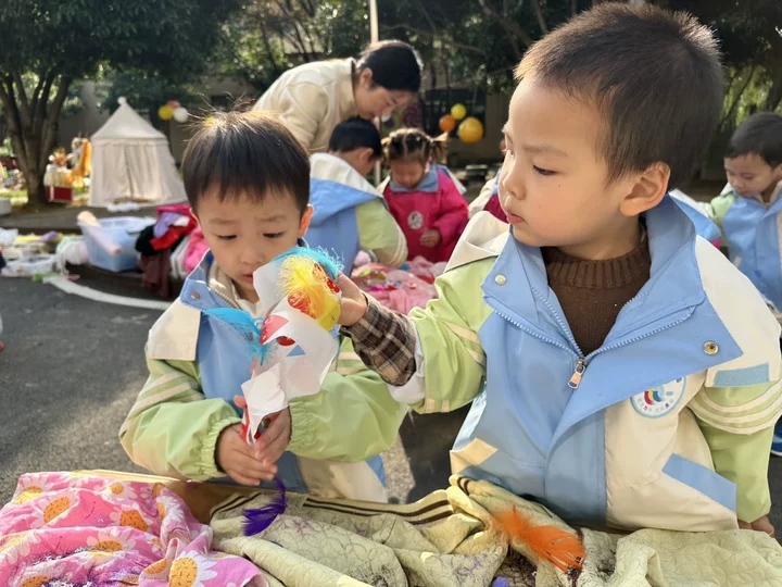 结合主题课程实践,幼儿园组织幼儿走进园区自然环境,通过找一找、摘一摘、比一比等方式,运用多感官观察秋天植物的形态特征。在“大树冬日呵护行动”中,孩子们拿起毛线、丝带为树木编织“保暖新衣”,五颜六色的装饰让园区充满童趣;“捡秋趣”活动里,幼儿亲手制作布袋,收集落叶、枯枝等自然素材,拼贴成创意图案,定格秋日美好;“衣旧精彩——创意改造大派对”上,幼儿与家长携手变废为宝,将旧衣物、闲置物品改造为特色服饰与趣味玩具,作品在幼儿园广场集中展览,吸引全园师幼驻足观赏、家长拍照留念,让环保理念与创新思维在实践中生根发芽。