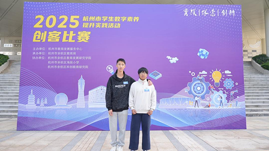 近日,2025年杭州市学生信息素养提升实践活动创客竞赛在余杭海辰小学举行,大赛以“实践、探索、创新”为主题,旨在激发青少年创新精神,提升数字实践能力,培养面向未来的信息科技人才。富阳区职业教育中心25数媒1班孙恒阳和25物联网班江令闻同学在周霖老师带领下,经过区赛选拔代表富阳区高中组参加“创意智造”赛项。同学们和其他高中同学抽签组队,围绕现场公布的“公共安全应急卫士”这一主题,在5小时内,通过头脑风暴、通力合作,制作、编程、调试完成了能解决实际问题的方案作品,合理利用各类智能装置,将人工智能技术运用于提升突发事件的预警与应对能力。最终孙恒阳同学荣获杭州市二等奖。