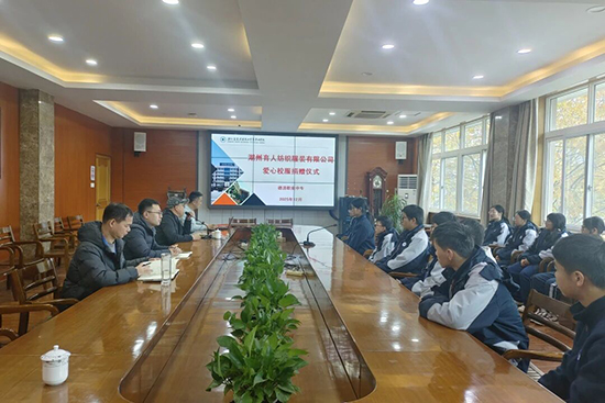 12月5日上午,德清职业中专会议室里洋溢着温暖的气息,一场以“情暖校园,爱心传递”为主题的校服捐赠仪式在此举行。湖州育人纺织服装有限公司董事长徐载强、学校党委委员马纪孝等相关负责人参与活动,为高一18位学生送上崭新的校服,用实际行动传递爱心与希望。
