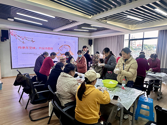 冬至临,汤圆甜,邻里相聚暖人心,在冬至时节吃汤圆已经变成了一种习俗。为传承中华民族传统节日文化,增进邻里情谊,12月16日上午,新碶街道社教中心杜鹃分中心联合台州银行共同举办“传承冬至味 共品汤圆甜”包汤圆主题活动,邀请辖区微网格长、老年居民及党员代表齐聚一堂,在欢声笑语中喜迎冬至佳节。