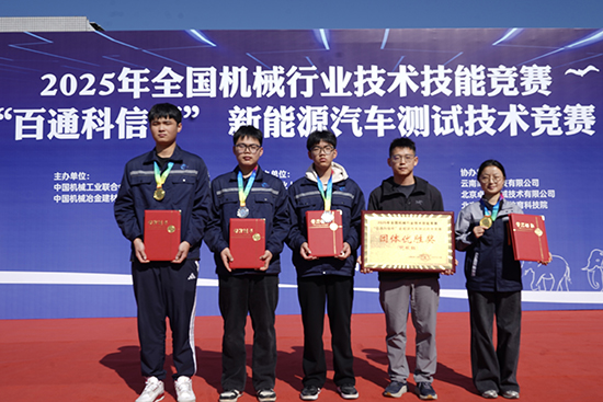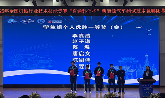 近日,2025年全国机械行业技术技能竞赛——“百通科信杯”新能源汽车测试技术竞赛决赛在云南昆明圆满落幕。在上虞区职业教育中心任城龙老师的带领下,参赛师生发挥出色,以全国排名第二的优异成绩荣获团体优胜奖,并斩获多项个人奖项。其中,任城龙老师荣获“金牌导师”称号;潘焕老师荣获职工组一等奖;24汽修大专班陈嗣儒同学(班主任李鹏)荣获学生组一等奖,同时被授予全国机械工业“操作技术能手”称号;24汽修大专班李博旭同学(班主任李鹏)与25汽修大专班张明浩同学(班主任车艳红)均荣获学生组二等奖。