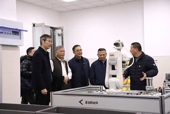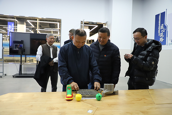 在学校党委书记卢科、校长张武剑的陪同下,陈安平副主席、郑坚江董事长一行参观了校园,实地考察了智能制造和交通运维专业群实训基地。参观过程中,张武剑校长详细介绍了学校的基本情况以及在专业建设方面的多年探索,并在学校现代化实训设备前向来宾展示了金属3D打印制作完成的“中国龙”作品、数控机床加工的精密零部件等学生实训成果。