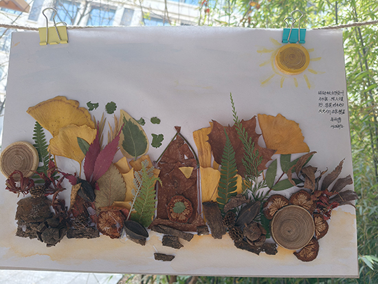 同学们充分发挥想象力与动手能力,将一片片平凡的落叶赋予新的生命。有的以暖黄、橙红等秋日色调拼贴出温馨的校园场景,传递对校园生活的热爱;有的用深浅不一的叶片勾勒出灵动的动物形象,寄托纯真的美好期许;还有的将落叶与文字创意结合,借叶片的纹理诉说内心的细腻情绪,真正践行了“秋日情绪调色盘”的活动主旨。创作过程中,同学们不仅锻炼了动手能力与审美素养,更在专注创作中舒缓了学业压力,实现了情感的表达与梳理。