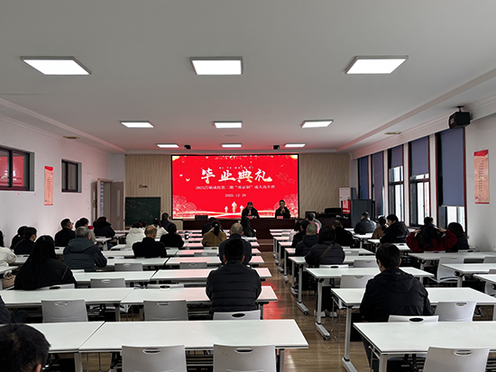 12月20日上午,安吉社区教育学院昌硕分院(安吉县昌硕成校)2025 年第二批双证制高中毕业生毕业仪式顺利举行。本次仪式采用 “线上 + 线下” 结合的形式,63名毕业生亲临现场,与老师、同学面对面分享结业喜悦;另有191名毕业生通过线上平台同步参与,共同见证这一意义非凡的时刻。毕业仪式由副校长李世祥主持。