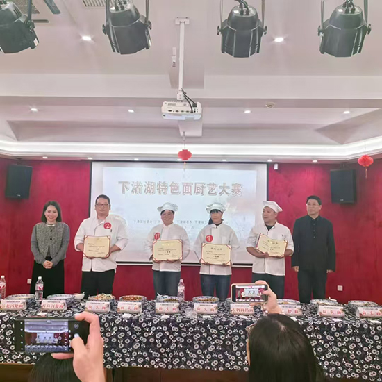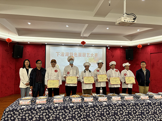 “本次大赛本着饮食与文化相结合、美食与健康相结合、传统工艺与创新技法相结合的理念,通过深入发掘下渚湖地区风味特色面食文化,全面展现湖畔面食制作水平,旨在进一步激发下渚湖特色面食业传承、创新、发展的热情,达到相互学习、切磋技艺的目的,为促进下渚湖全域旅游产业发展赋能添彩。”下渚湖成校负责人俞国新老师说。(俞国新)
