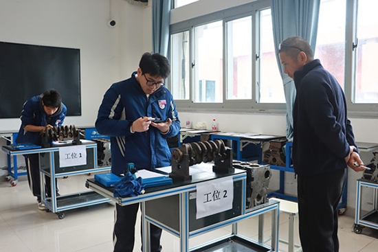 考试期间,三个工种同步开展,以“理论+实操”双维度考核学生的专业能力。考生首先参加上机考试,以检验专业理论知识的掌握程度。在实操环节,考生需在规定时间内独立完成相应职业的典型任务:汽车维修工进行汽车故障等三个模块,数控车工完成编程与精密零件加工,电工则实施继电控制电路装调维修等三个模块。整个考试过程不仅展现了学生扎实的理论功底和规范的操作技能,也全面考察了他们解决实际问题的综合职业能力。
