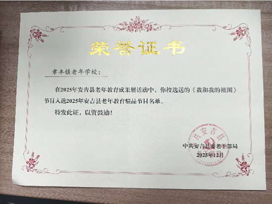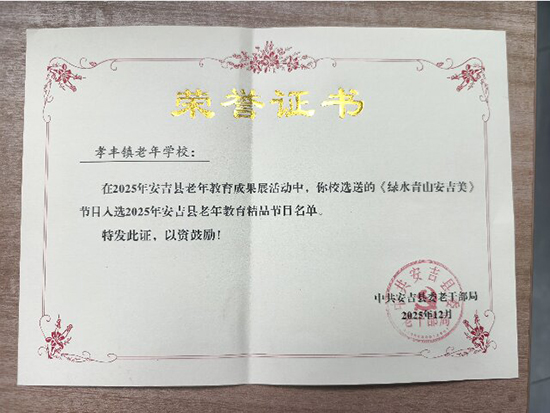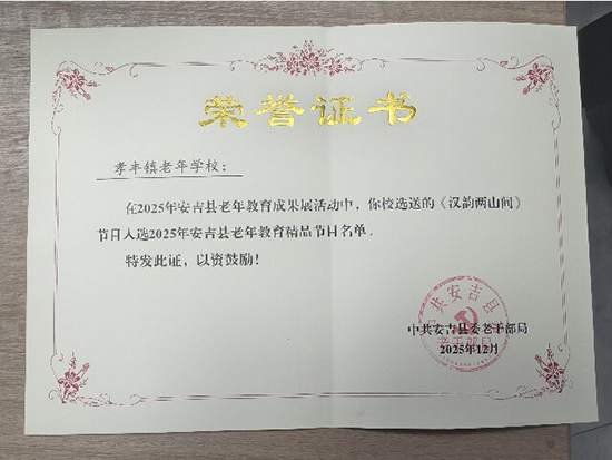 这一张张证书,不仅是对孝丰分院的肯定,更折射出当下老年教育的新趋势:当 “老有所学” 遇上 “文化传承”“美育浸润”,银发生活也能成为城市文化里的一抹亮色。(郝敬德)