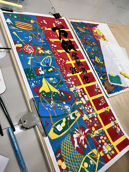 数易其稿后,叶子最终以大胆的色彩碰撞、饱满的画面叙事,让家乡的开渔文化在省赛舞台上绽放光彩。