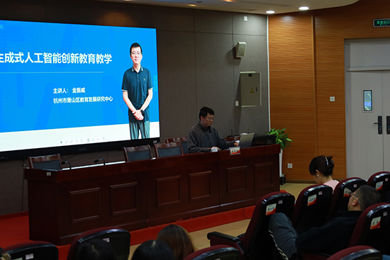 为响应教育数字化改革号召,落实产教融合发展要求,助力教师数智化能力提升,浙江开放大学临平学院开展“双核”能力提升系列校本研修活动。本次活动特别邀请杭州市萧山区教育发展研究中心金振威主任莅临授课,为全体教师带来“生成式人工智能创新教育教学”专题讲座,干货满满、反响热烈。