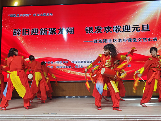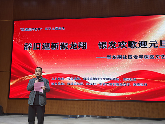 12月25日下午,梅溪村文化大礼堂内张灯结彩、暖意融融,“辞旧迎新聚龙翔,银发欢歌迎元旦”迎元旦暨龙翔老年学堂年终文艺汇演在此温情上演。本次活动由安吉县社区教育学院梅溪分院(梅溪成校)、龙翔社区联合主办,多部门协办,为辖区老年朋友献上了一场精彩纷呈的文化盛宴。
