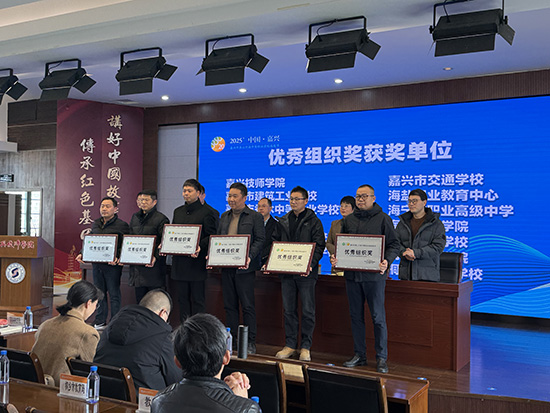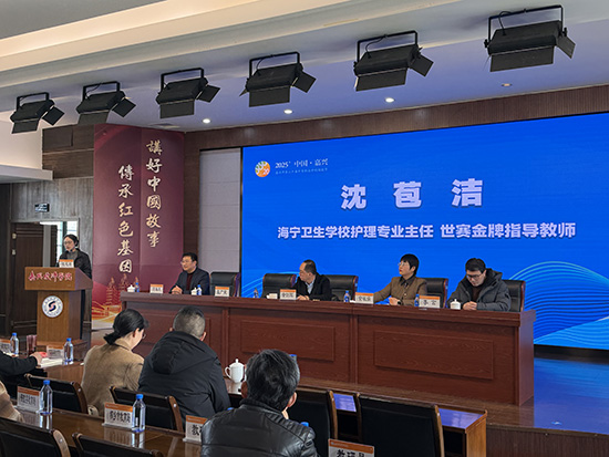 闭幕式上,海宁卫校(海宁市综合高中)的亮眼成绩再次成为焦点。学校获评“优秀组织奖”;学校在世界职业院校技能大赛总决赛排位赛中创造的辉煌——打破省地市中职参赛队及全国中职护理参赛队历史纪录的优异表现,被多次提及,赢得全场广泛赞誉。海宁卫校护理专业主任、世赛金牌指导教师沈苞洁作为教师代表登台,分享了学校在技能人才培养、赛事备战中的经验做法。从课程体系构建到实训平台搭建,从师资团队建设到个性化指导策略,沈苞洁的分享干货满满,为兄弟学校的技能人才培养工作提供了宝贵借鉴。