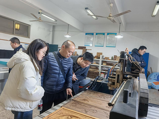来访嘉宾依次参观了学校的木雕实训室、民间工艺精品馆、汽修钣金与油漆实训室、汽车营销实训室、服装实训楼及创客教育展厅,对学校特色实训基地建设和实践教学成果给予高度评价。