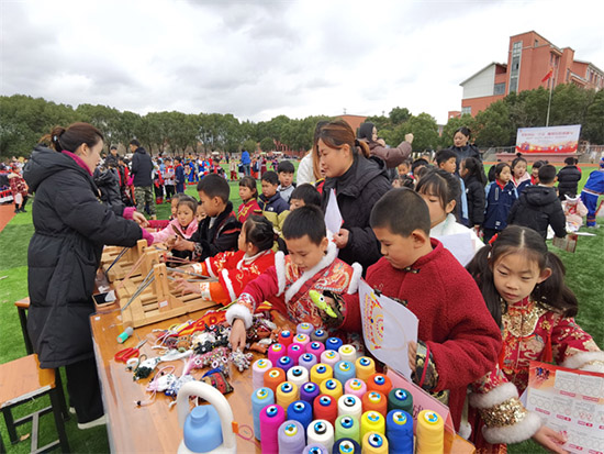 辞旧迎新之际,为厚植青少年中华优秀传统文化根基,铸牢中华民族共同体意识,12月31日上午8:30,安吉县社区教育学院递铺分院携手六位非遗传承人,走进第七小学教育集团银湾校区,开展“籽籽同心一家亲趣探民俗迎新年”主题活动,让孩子们在趣味游园中邂逅非遗之美,在闯关互动中体悟团结之意。