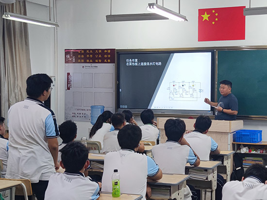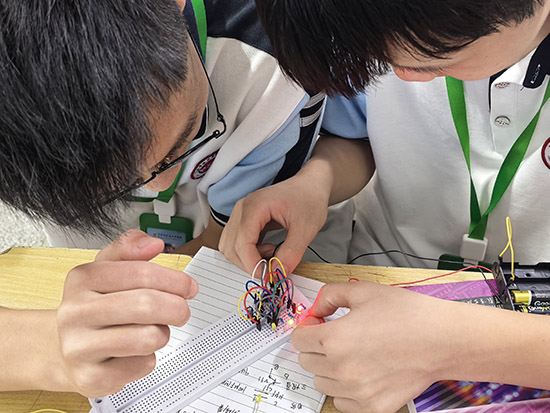 建智和轨交供电专业学生在两位专业教师的指导下,体验了趣味电路搭建,实践环节里,抽象的理论知识转化为可触可感的动手操作,在反复调试与创新尝试中,点燃思维创新的火花。