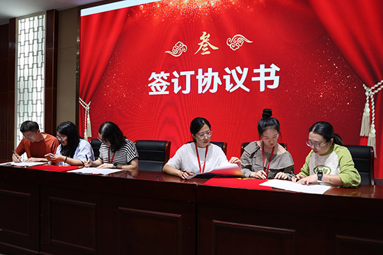 随后,师徒结对协议书签订环节温情上演。两对师徒代表率先迈步上台,在全场目光的见证下,郑重落笔签下姓名;其余师徒亦在原座同步签约。这一纸协议,不只是责任的郑重约定,更是经验薪传、成长许诺的温暖象征。