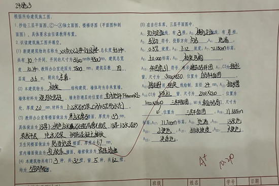 学生优秀作业同样可圈可点。建筑专业的施工图绘制工整规范、尺寸标注精准;工程造价专业的工程量清单计算条理清晰、数据准确;建筑装饰专业的设计草图创意新颖、贴合实际需求。一份份高质量作业,不仅展现了学生扎实的专业基础,更彰显了他们在学习过程中的专注与用心,成为教学成效的直观体现。