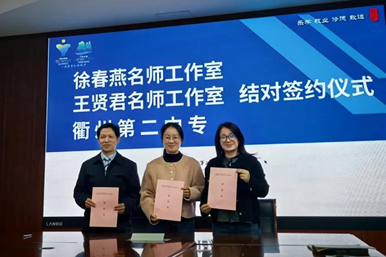 12月29日下午,衢州第二中专与徐春燕名师工作室、王贤君名师工作室进行校际合作帮扶协议签署仪式。在三方成员的共同见证下,徐春燕名师、王贤君名师与校长吴晓彩共同签署合作协议书,自此正式确立长期、稳定的对口帮扶与深度合作关系。
