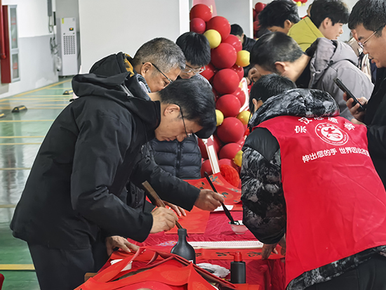 活动现场张灯结彩,年味十足。“翰墨迎春”送福区内,社区书法爱好者挥毫泼墨,将一副副春联、一个个“福”字赠予邻里,展现了社区成人美育的成果。随后的“蛋糕送福”环节,社区负责人送上新年祝福,并与居民分享甜蜜蛋糕,传递团圆温情。