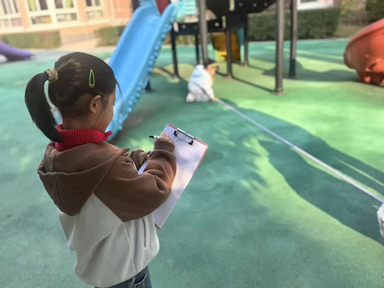暖阳和煦,大班的趣味测影子活动正热闹开展。孩子们三人一组、分工协作,两人拉皮尺测量,一人记录数据。在老师的引导下,他们穿梭于户外与活动室之间,细致记录不同时段影子的长短与形态变化。通过对比分析数据,孩子们直观地掌握了冬至节气的特点。为期一周的亲身实践,让孩子们解锁了节气背后的科学奥秘,更在探索中培养了敏锐的观察力与浓厚的求知欲。