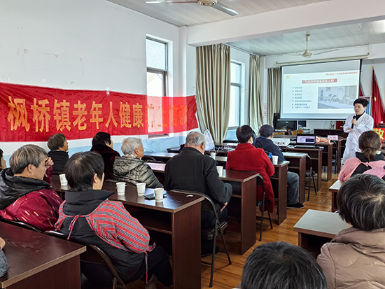 2025年12月25日下午,诸暨市枫桥镇社区教育学校联合诸暨市第二人民医院,特邀主任护师卓周平与内科主任医师吕华军走进枫桥镇乐山村文化礼堂,为辖区老年人带来了一场实用的健康养生科普讲座。