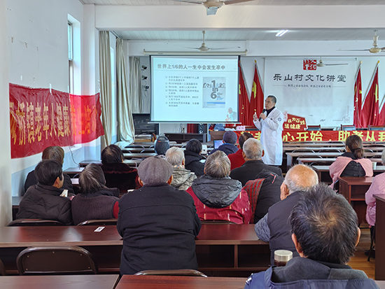 随后,内科主任医师吕华军主讲《脑卒中的危害及脑卒中健康知识介绍》。他从“脑卒中的现状”“脑血栓症状”“预防原则”“致病原因”“阿司匹林的适用人群”及“健康生活方式”等方面进行了深入浅出的科普。吕华军用“世界上1/6的人一生中会发生卒中”这一数据,生动地阐明了脑卒中的普遍性。他指出了卒中发病的6个重要危险因素,并通过图示展示了头晕、肢体麻木、乏力等前驱症状,告诫老人们一旦出现相关症状,务必引起高度重视。在预防环节,吕华军详细解读了“卒中预防5项基本原则”,从“戒烟限酒,受益无穷”“适当锻炼,减少肥胖”等方面给予了具体指导。听到吸烟的危害,现场几位老烟民纷纷打消了吸烟的念头。此外,吕华军还特别强调了运动过程中的注意事项,提出了“清晨过早运动”等四大不宜和“生病或身体不适时应停止运动”四大注意事项。讲座在“祝您拥有健康的身体,同时享受健康的生活!”的美好祝福中圆满结束,赢得了老人们的热烈掌声。
