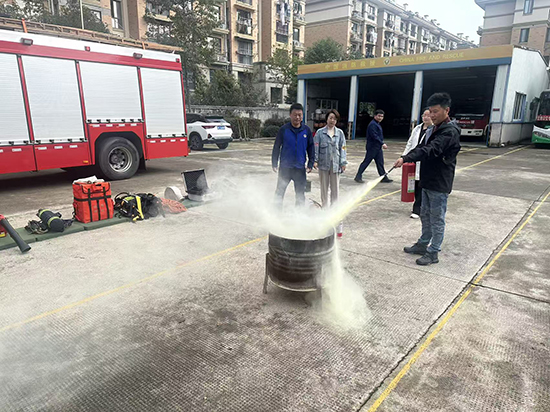 理论学习后,实操演练环节有序开展。丁队长现场演示了灭火器“提、拔、握、压”四字操作诀、消防栓水带连接等关键技能,强调“上风向站位”“对准火焰根部喷射”等实操细节 。全体教职工分组参与实战练习,在专业指导下亲身体验灭火器使用、应急疏散等实操项目,通过“手把手”教学确保每位教职工都能熟练掌握应急处置技能,真正做到“人人懂操作、个个能应急”。