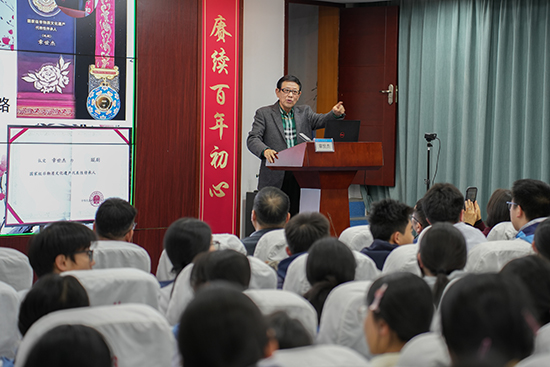 相较于吴辉盛的前瞻视野,章世杰校友带来的是根植于传统的深度与坚守。作为国家级瓯剧传承人,他并未过多谈及荣誉,而是深情地分享了戏剧团“台上一分钟,台下十年功”的日常点滴:清晨练功房里日复一日的吊嗓,老师傅对一顶头冠细节的反复打磨……他从自己一步步成长的经历出发,向学弟学妹们生动阐释了“吃得苦中苦,方为人上人”的朴素哲理。他坚定地告诉同学们:“喜欢一行,就要钻研一行,不要怕放弃。”这份将热爱淬炼为一生事业的“螺丝刀精神”,让在场的每一位观众感受到了“工匠精神”中那份沉静而磅礴的力量。