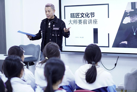 文化节的重头戏“瓯匠名家讲坛”如期开讲。学校领导与数百名学生齐聚一堂,共同聆听两位杰出校友——国家级非遗(瓯剧)代表性传承人章世杰与温州市瓯海区国际商会副会长吴辉盛的精彩分享。两位名家虽身处不同领域,却以同样璀璨的“匠心”,为学弟学妹们照亮了截然不同却又殊途同归的成长之路。