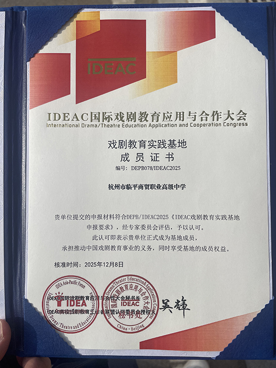 2025年12月25日至28日,浙江开放大学临平学院EchoStage英语戏剧社的十位学生演员在指导教师姜琢瑕、童小琴老师的带领下远赴北京,参加IDEAC青少年国际戏剧文化交流展暨第八届“蓝斗篷”青少年创意戏剧国际展评,在中央戏剧学院主剧场演绎了由团队改编的莎士比亚经典作品《仲夏夜之梦》。