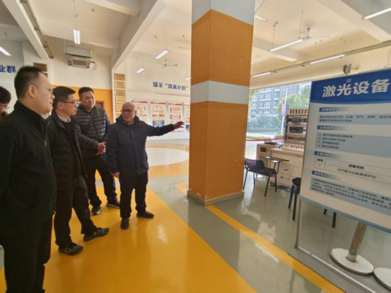 在郑道友院长和潘康俊主任的陪同下,柳职交流团首先实地参观了光电制造学院的专业实训室及国家激光制造与材料技术协同创新中心。走进实训室,各类先进的实训设备整齐排列,实训场景规范有序,学生专注实操的身影展现出浓厚的学习氛围。在国家激光制造与材料技术协同创新中心,郑院长详细介绍了中心的建设背景、科研实力、校企合作成果以及在行业内的影响力。