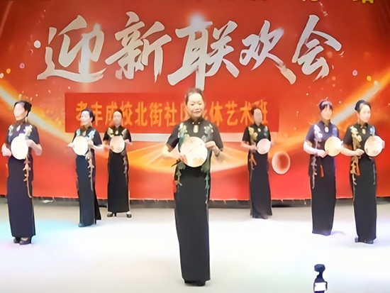 作为形体班的组织与带队教师,章芸老师带领学员们带来了精心编排的节目。每个节目中学员们都身着统一服饰,以挺拔的站姿、优雅的走位展现形体训练成果,举手投足间尽显自信与从容,将马面裙的古典韵味与旗袍的温婉雅致演绎得淋漓尽致。整齐划一的动作、饱含深情的演绎,赢得现场观众阵阵掌声,不少村民拿出手机记录下精彩瞬间。