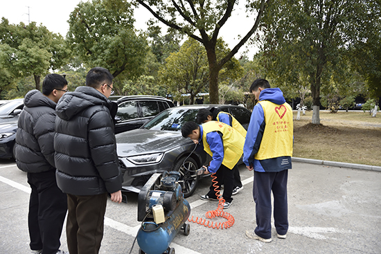 “天气冷了,正想着要不要去店里检查一下轮胎,没想到在学校停车场就有专业服务,真是暖心又方便!”一位前来参与活动的教师表示。活动现场,学生们还向车主发放了精心编制的《冬季车辆日常检查与保养小提示》宣传单,内容涵盖胎压自查、玻璃水选用、车窗除雾等实用技巧,受到教职工的广泛欢迎。