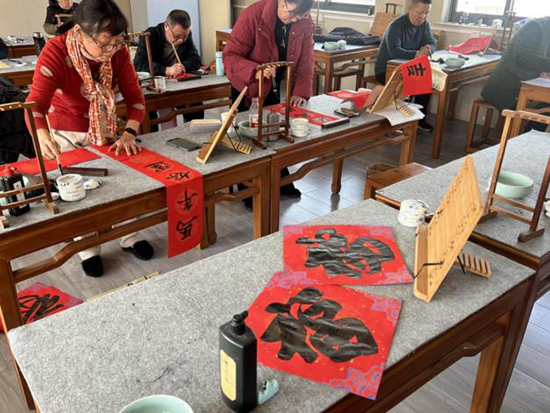 课桌上,连片的红纸取代了平日的素宣。学员们手握毛笔,笔尖流淌的不再是寻常书法字,而是一个个圆润饱满的“福”,一副副墨韵盎然的春联。红纸黑字间,年的气息就这样在教室里弥漫开来。