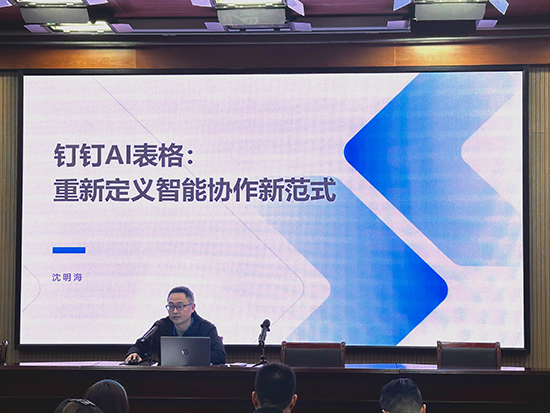 在随后的会议议程中,教学质量处副处长沈明海带来“钉钉信息化应用赋能教学提质”专题讲座。结合当前 AI 技术重塑教育生态的发展趋势,沈明海系统介绍了AI表格的核心功能与运作模式,通过现场操作演示详细讲解了其使用方法,并就实际应用中可能遇到的常见问题作了解答。讲座内容紧密贴合一线教学需求,旨在帮助教职工快速掌握AI表格等技术工具在教育教学场景中的应用,进一步提升教学效率与管理水平。与会教师反映,此类培训具有很强的实用性和针对性,为学校推动“AI+教育”融合、深化数字化校园建设提供了有效支持。
