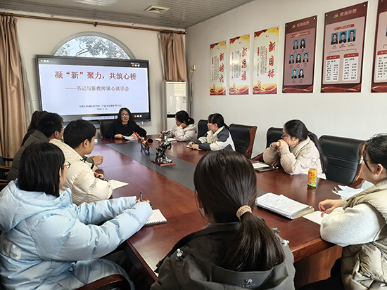 冬阳暖煦,情谊融融。1月13日下午,宁波东钱湖旅游学校行政楼三楼会议室内气氛既温馨又热烈,一场以“凝心聚力,共筑心桥”为主题的书记与新教师谈心谈话会在此举行。学校党总支书记徐春燕、校庆办主任张良斌、综合组教研组长胡科平与十位新教师围坐一堂,敞开心扉,共话成长。