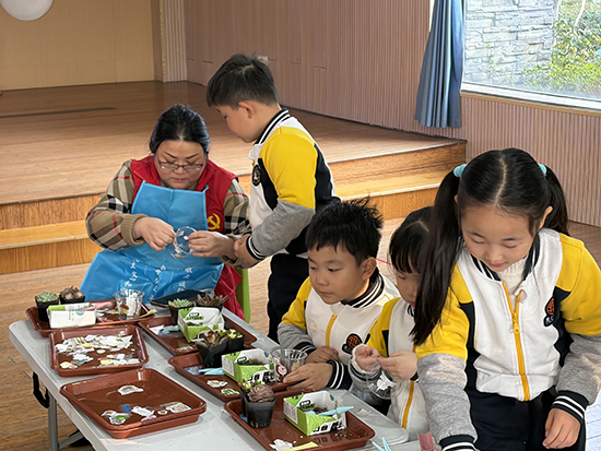 活动现场温馨洋溢,笑语不断。银发与童颜交织,巧手与童心共鸣。一件件独具创意、承载绿色愿景的多肉盆栽在共同努力下完成。本次活动将垃圾分类宣传融入轻松愉快的手工创作,以“润物细无声”的方式,在孩子心中播撒环保与学习的种子。同时,这也是“银伢和乐”品牌在社区教育中的一次生动实践:不仅激发了“五老”志愿者的参与热情,彰显“老有所为、老有所乐”的积极老龄观,也通过跨代协作,让孩子们在陪伴中学习,在互动中成长,真正实现“银龄”与“幼芽”的双向滋养,为构建学习型、绿色型、和谐型社区注入持续活力。(新碶成校)