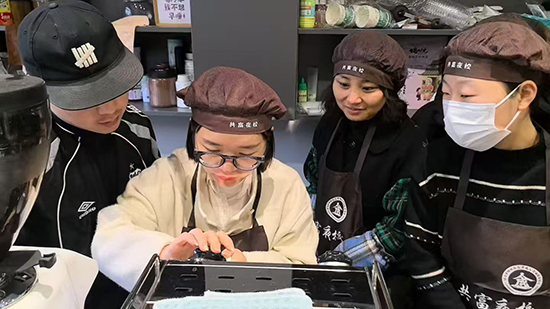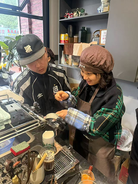 为进一步强化学员的实践能力,1月17日,学校组织学员走进山也咖啡馆,开展沉浸式实操培训。咖啡师金老师手把手教学员操作手冲咖啡、拿铁拉花等核心技能,从研磨、萃取到牛奶打发、图案成型,每一个细节都进行耐心指导。学员们热情高涨,在互动中不断尝试与调整,现场氛围积极而热烈。