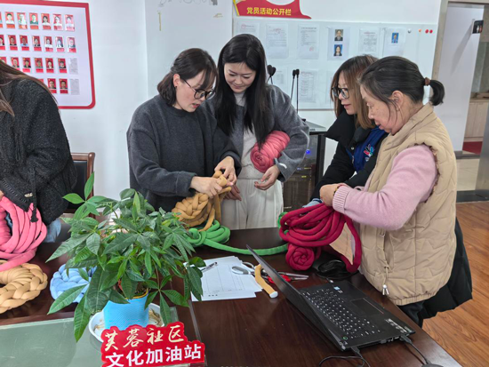 “我来帮你调整一下,这么编有点太紧实了!”1月15日下午,新碶街道社教中心芙蓉分中心居民在老师指导下,体验用冰岛毛线编织冬日坐垫。这是社区通过文化加油站点单开展的“交织线团,交织邻里”手工编织活动,让这个平常的午后变得格外温馨。