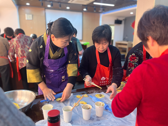 “和面要三光——盆光、面光、手光,这样和出来的面才筋道。” 陈老师边操作边讲解,将复杂的面点制作技巧分解成通俗易懂的步骤。学员们围在老师身边,认真聆听每一个细节,不时提出问题,现场学习氛围浓厚。在陈老师的手把手指导下,居民们纷纷动手实践,大家互相切磋技巧,分享经验。现场欢声笑语不断,一双双巧手捏出了形态各异的饺子,有传统的月牙形,也有创新的元宝形、玫瑰花形等。